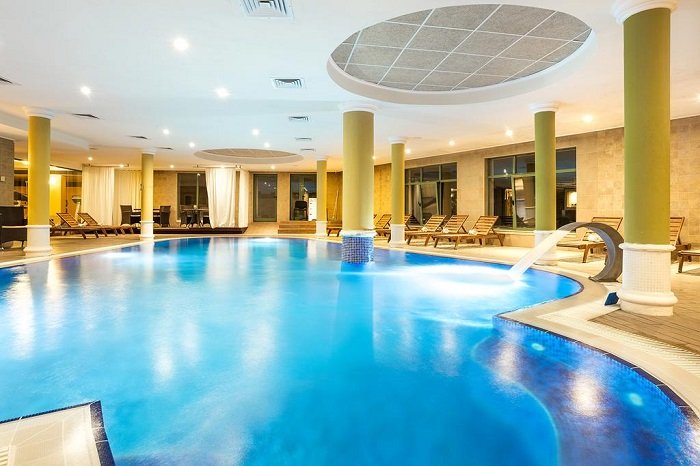 Gratuit: piscina exterioara si interioara, sezlonguri si umbrele de soare langa piscina, fitness, sauna finlandeza, sauna cu infrarosu si bai de aburi