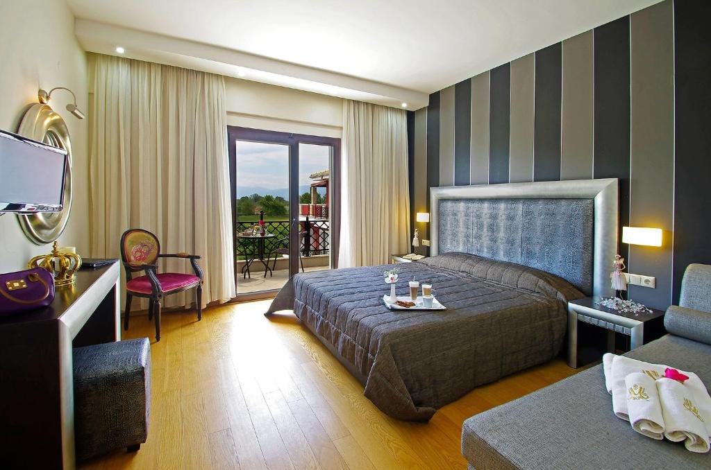 Amplasat la poalele Muntelui Olimp, acest refugiu luxos imbratiseaza pe malul marii Riviera Olimpului, la doar 120 de metri de tarmurile nisipoase. Creat ca o oaza de experiente de lux, promite servicii exceptionale, cazare impecabila si ospitalitate de neegalat.