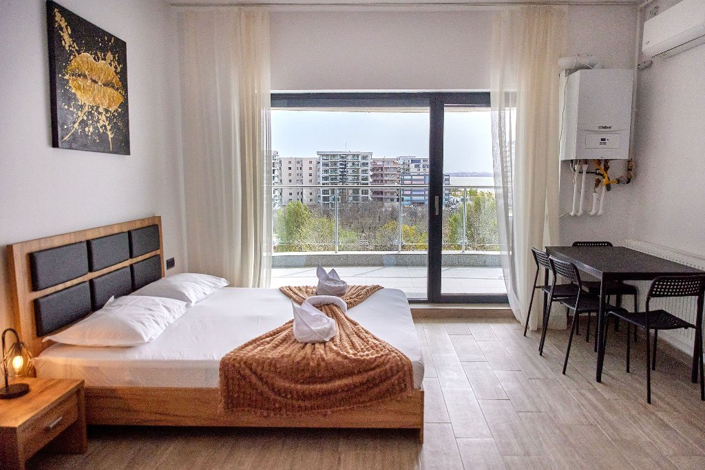 Balcon:Balconul privat ofera o panorama uimitoare asupra marii si lacului, fiind locul perfect pentru a va relaxa si a va bucura de privelistea senina si de briza marii. Mobilierul confortabil va invita sa va savurati cafeaua dimineata sau sa admirati apusurile spectaculoase de soare in timpul serilor romantice.