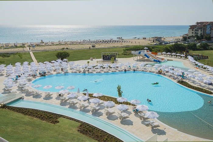 Despre hotel: Hotelul ofera oaspetilor sai o mare varietate de servicii si facilitati, bucatarie delicioasa, o gama larga de mese si deserturi, bauturi selectate si servicii impecabile. Echipa noastra internationala de animatie ofera un program complet de divertisment cu activitati zilnice si spectacole de seara pentru copii si adulti, 6 zile pe saptamana. Restaurant principal, restaurant pentru cine tematice, cofetarie, bar/snack bar la piscina, magazine, parcare exterioara, centru de wellness, schimb valutar, piscina pentru copii si adulti. Sport si Spa: Masaje si proceduri, fitness, sauna, baie de aburi, volei pe plaja si fotbal pe plaja, darts, polo pe apa, zumba, animatie pentru adulti si copii, tenis de masa etc.