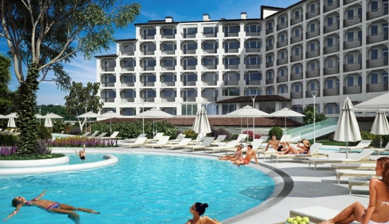 Cazare: Hotelul a fost construit in 2018 si are o cladire cu 7 etaje. Ofera 128 de camere duble cu vedere la parc, 110 camere duble cu vedere la mare si 12 suite junior. Hotelul dispune de 3 lifturi.