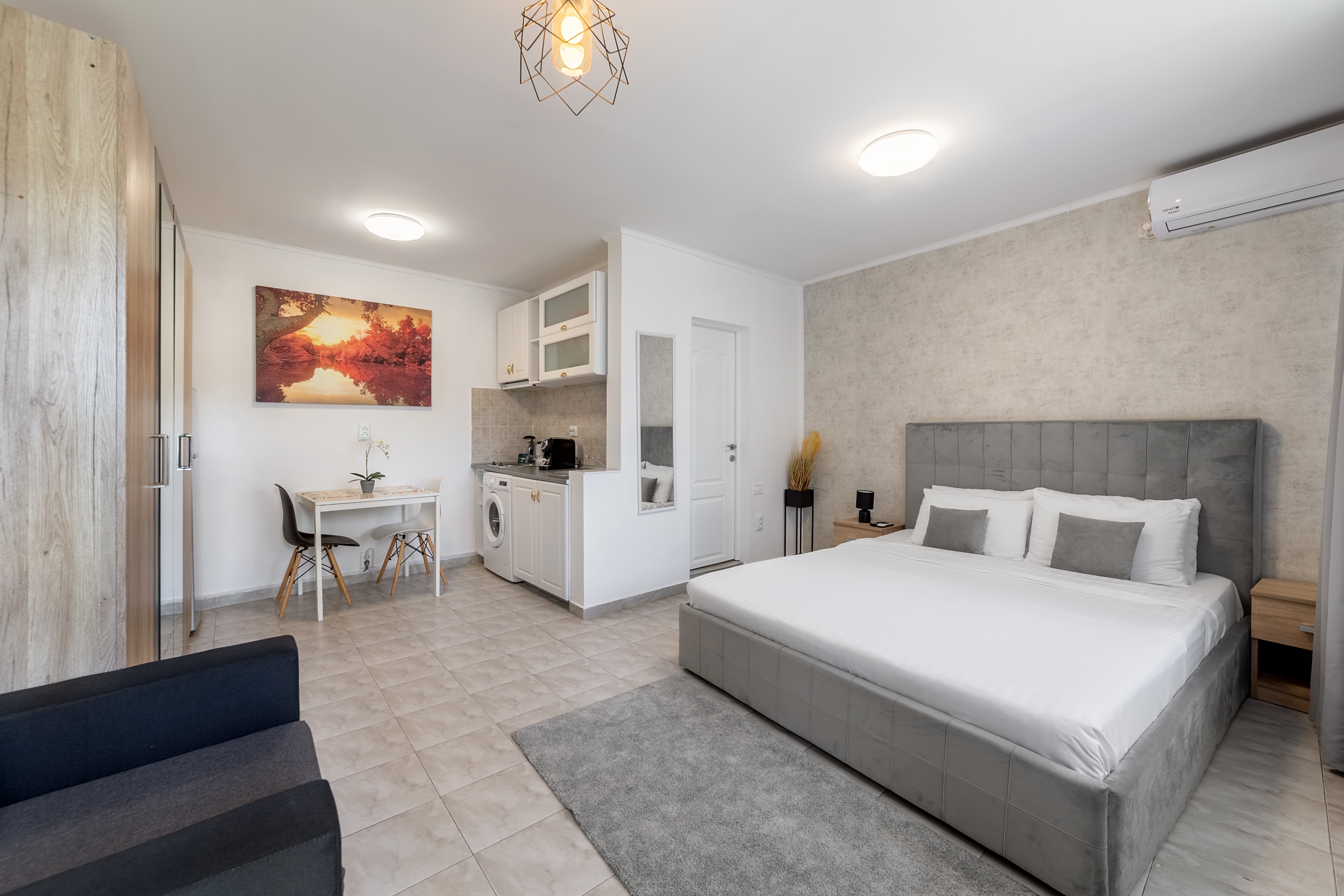 - Frigider, cuptor cu microunde, prajitor de paine, fierbator de apa calda si masina de spalat;