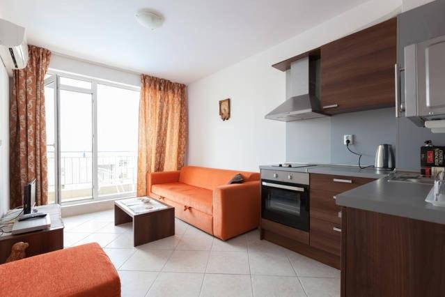 STUDIO 2+0: Suprafata aproximativa de 30 mp. Garsoniera este formata dintr-o camera cu pat dublu sau canapea extensibila si ustensile de bucatarie. Baie cu dus si toaleta. Capacitate maxima de 2 adulti.