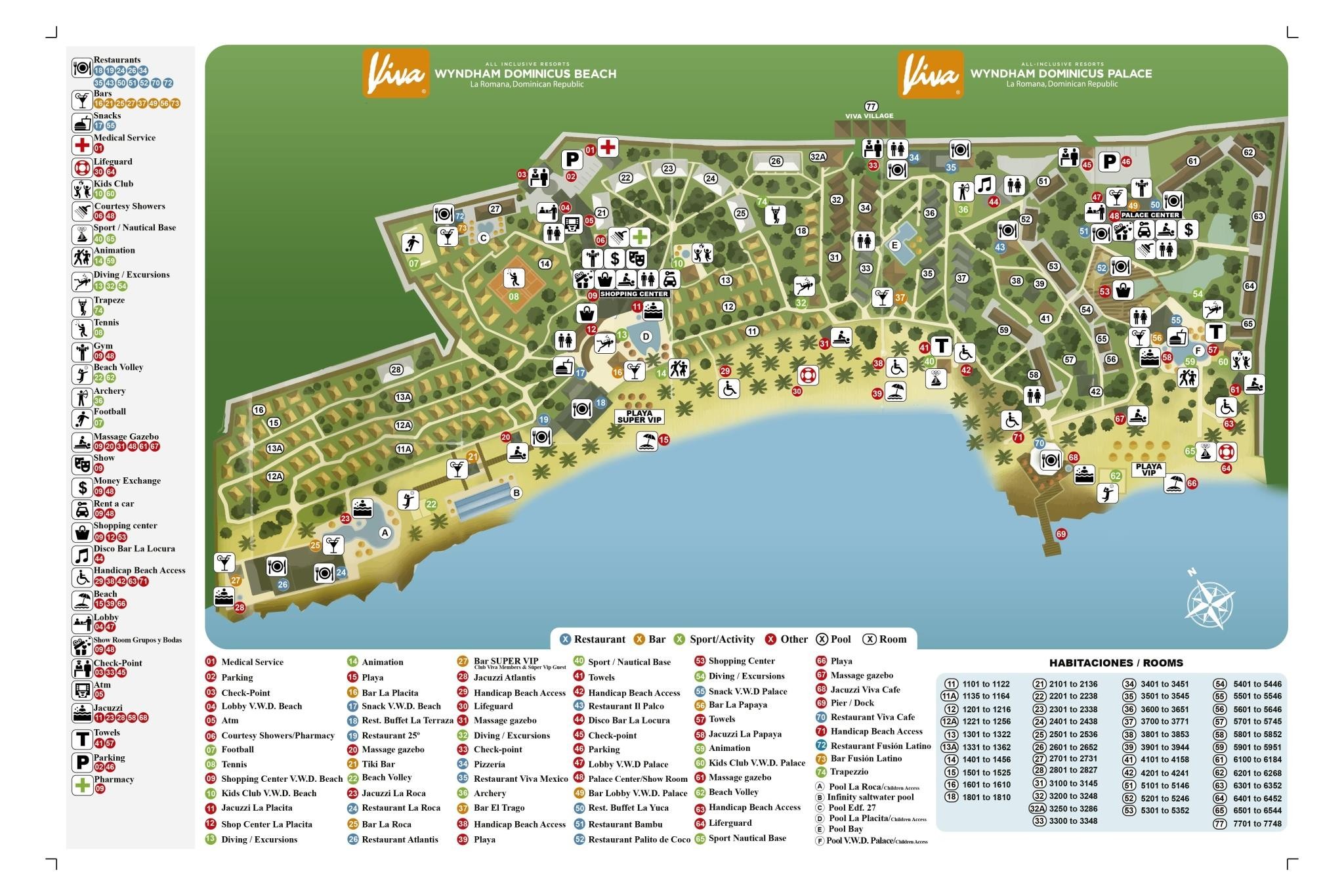 Viva Wyndham Dominicus Palace este situat langa Marea Caraibelor, in zona Bayahibe. Complexul hotelier se afla la 100 km de Aeroportul Punta Cana (aproximativ 1 ora si15 minute de mers cu masina), 18 km de Aeroportul International Romana (aproximativ 15 minute de mers cu masina), si la 25 de minute de orasul La Romana.