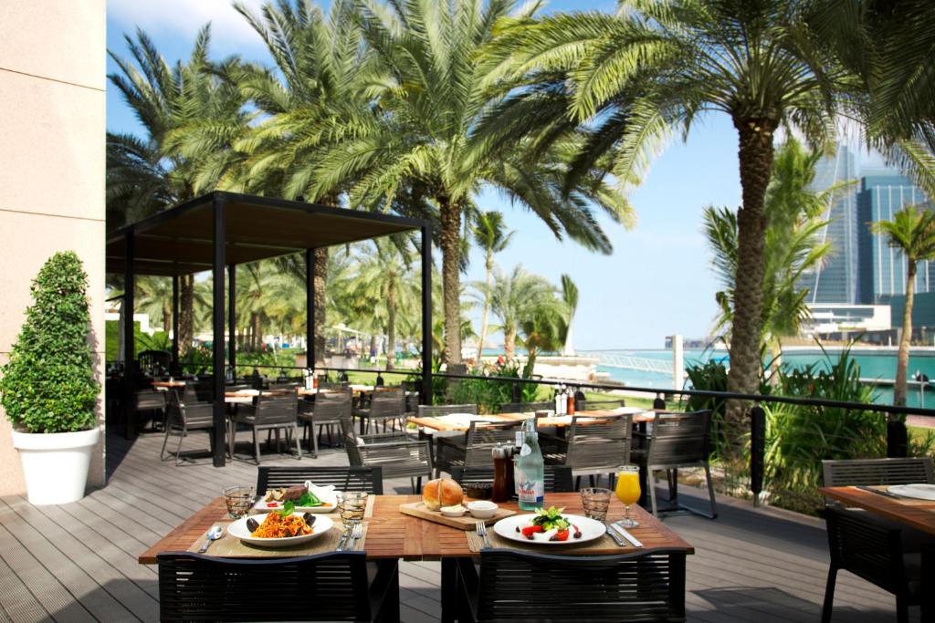Avand facilități comune cu hotelul de 5 stele Beach Rotana, proprietatea oferă 10 locuri de luat masa diferite, care servesc o gamă largă de preparat internațional și o selecție excelentă de băuturi.