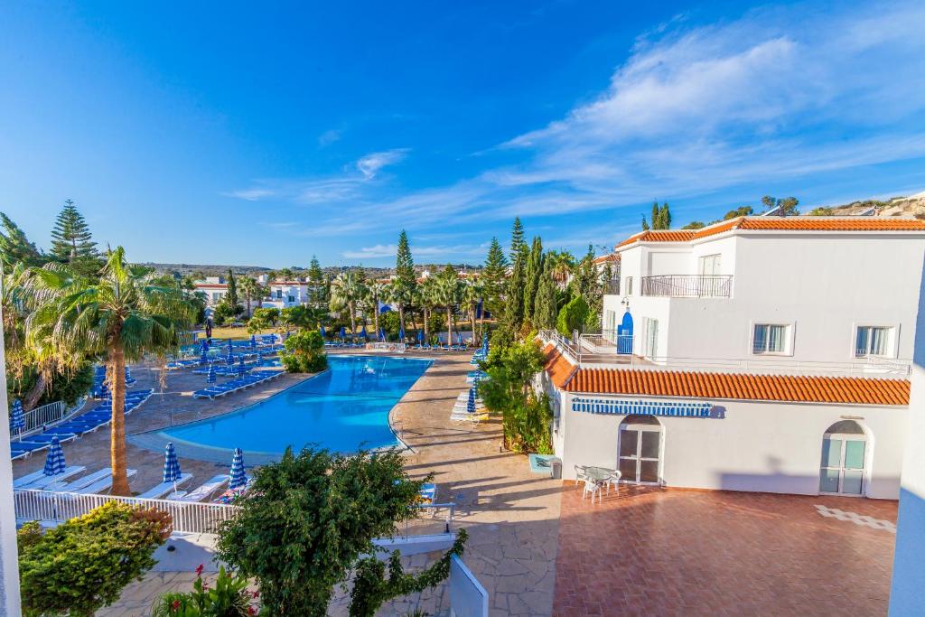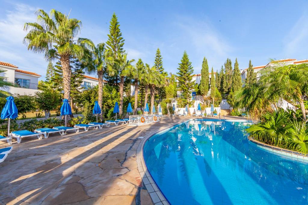 Complexul dispune de o piscină in aer liber inconjurată de șezlonguri și umbrele, perfectă pentru momentele de relaxare sub soarele cipriot. Pentru confortul oaspeților, fiecare apartament este dotat cu chicinetă complet utilată, aer condiționat și balcon privat.