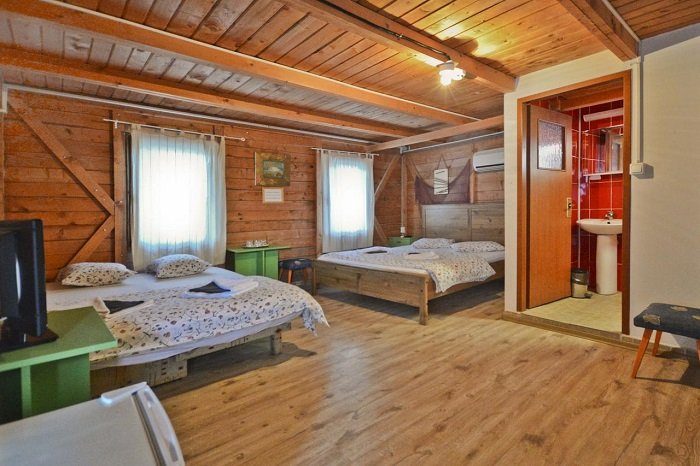 7 dintre camerele duble sunt dotate cu grup sanitar propriu, tv, minibar si aer conditionat. Celelalte camere nu beneficiaza de grup sanitar propriu.