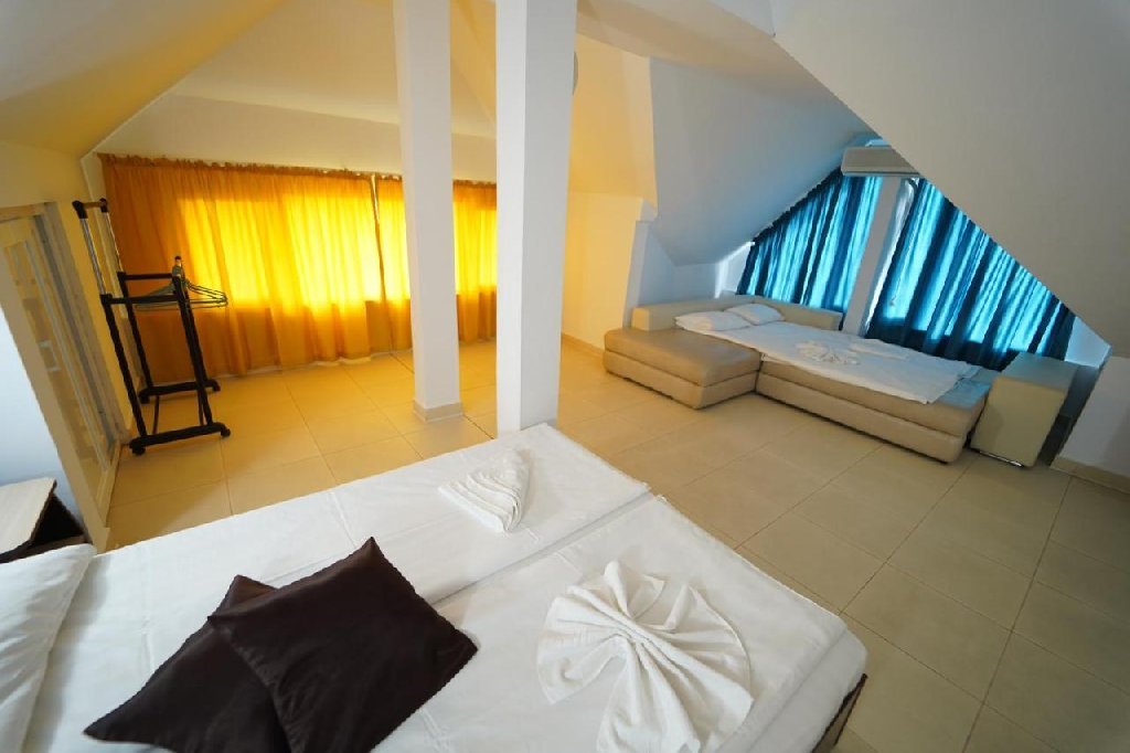 Ofera camere duble si triple, un apartament Duplex pentru 8 persoane si un apartament de lux (maxim 5 persoane), toate spatioase, dotate si renovate recent. Unitea de cazare dispune de o bucatarie comuna utilata complet, bar, loc de servit masa, gratar, terase, receptie loc de joaca, gradina, parcare i acces gratuit la internet WiFi in toata cladirea. Apartamentele au bucatarii proprii..
