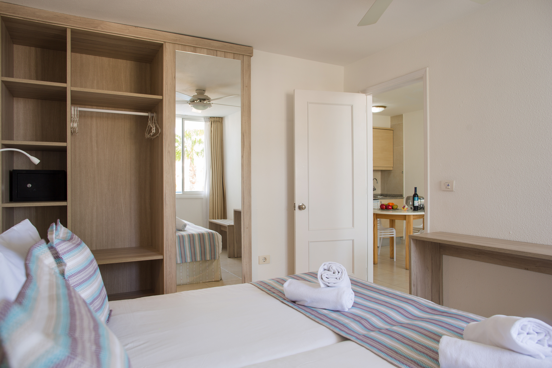 The accommodation Apartamentos Playa del Sol is located approximately 300 m from a beach. The nearest restaurants and bars can be reached in a few minutes on foot. The old town is around 40 km away. You can find a range of shops and a supermarket dirThe accommodation Apartamentos Playa del Sol is located approximately 300 m from a beach. The nearest restaurants and bars can be reached in a few minutes on foot. The old town is around 40 km away. You can find a range of shops and a supermarket directly on your doorstep. There is a shuttle service between the hotel and the airport. Nearby there is a disco which offers entertainment in high season. The beach is Nudist bathing is allowed here. The hotel has a 24h reception (check-in is possible around the clock), Wi-Fi, internet access, a lift, a supermarket, cash machine, a hairdresser, a jacuzzi as well as a first aid kit. In the outdoor area of the property you will find a garden as well as a supervised pool, where sun loungers and sun umbrellas are available for free. Furthermore, you can relax outdoors on the sun terrace. In addition, the hotel Apartamentos Playa del Sol is video-monitored 24h a day. You can store your luggage in the hotels storage room. For your comfort there is a concierge service. If you want to explore the holiday region, you can use the car rental service close to the hotel. At the hotel reception, tickets are offered for excursions in the area. Euro/Master Card and Visa are accepted as means of payment. Due to its barrier-free facilities , such as a handrail in the elevator, the hotel is also suitable for wheelchair users.