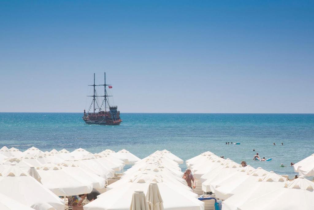 Restaurant și divertisment: Hotelul dispune de un restaurant și un bar, oferind o varietate de opțiuni de luat masa. Divertismentul de seară include muzică live și un loc de joacă pentru copii. Aeroportul Antalya se află la 66 km, iar plaja Kumkoy este la 6 minute de mers pe jos.