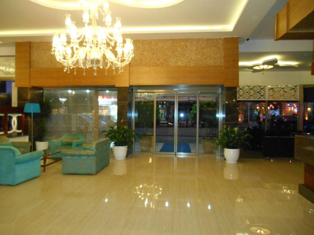 Camerele luminoase și confortabile sunt dotate cu aer condiționat, TV prin satelit și balcon, multe dintre ele oferind vedere spre mare. La restaurantul principal, bucătarii pregătesc specialități turcești și internaționale, iar barul de la piscină servește cocktailuri răcoritoare pe tot parcursul zilei.